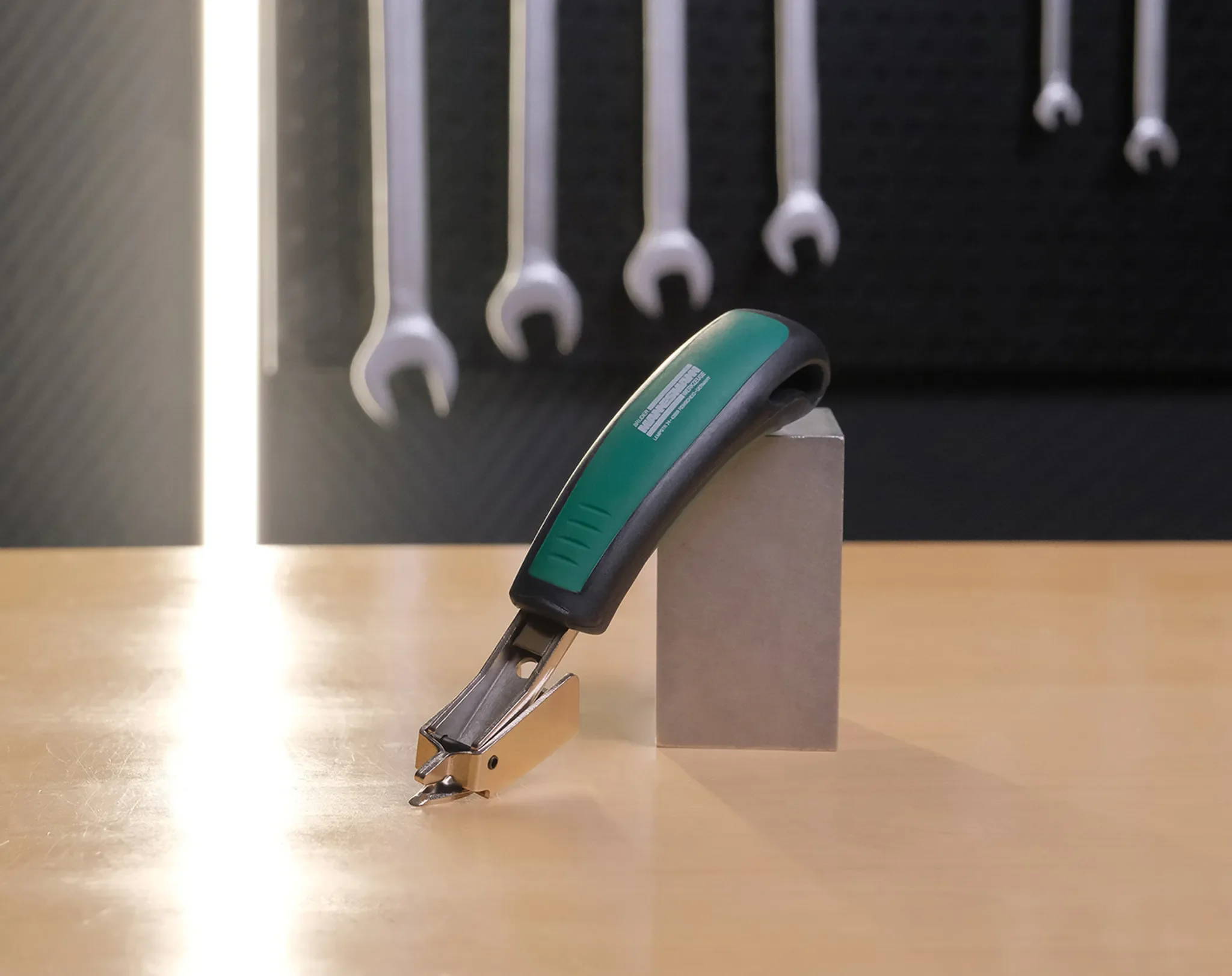 Der ergonomische Griff liegt angenehm in der Hand und unterstützt sicheres Arbeiten – ideal für Büro, Werkstatt oder Archiv. Ein zuverlässiges Werkzeug für den täglichen Einsatz.