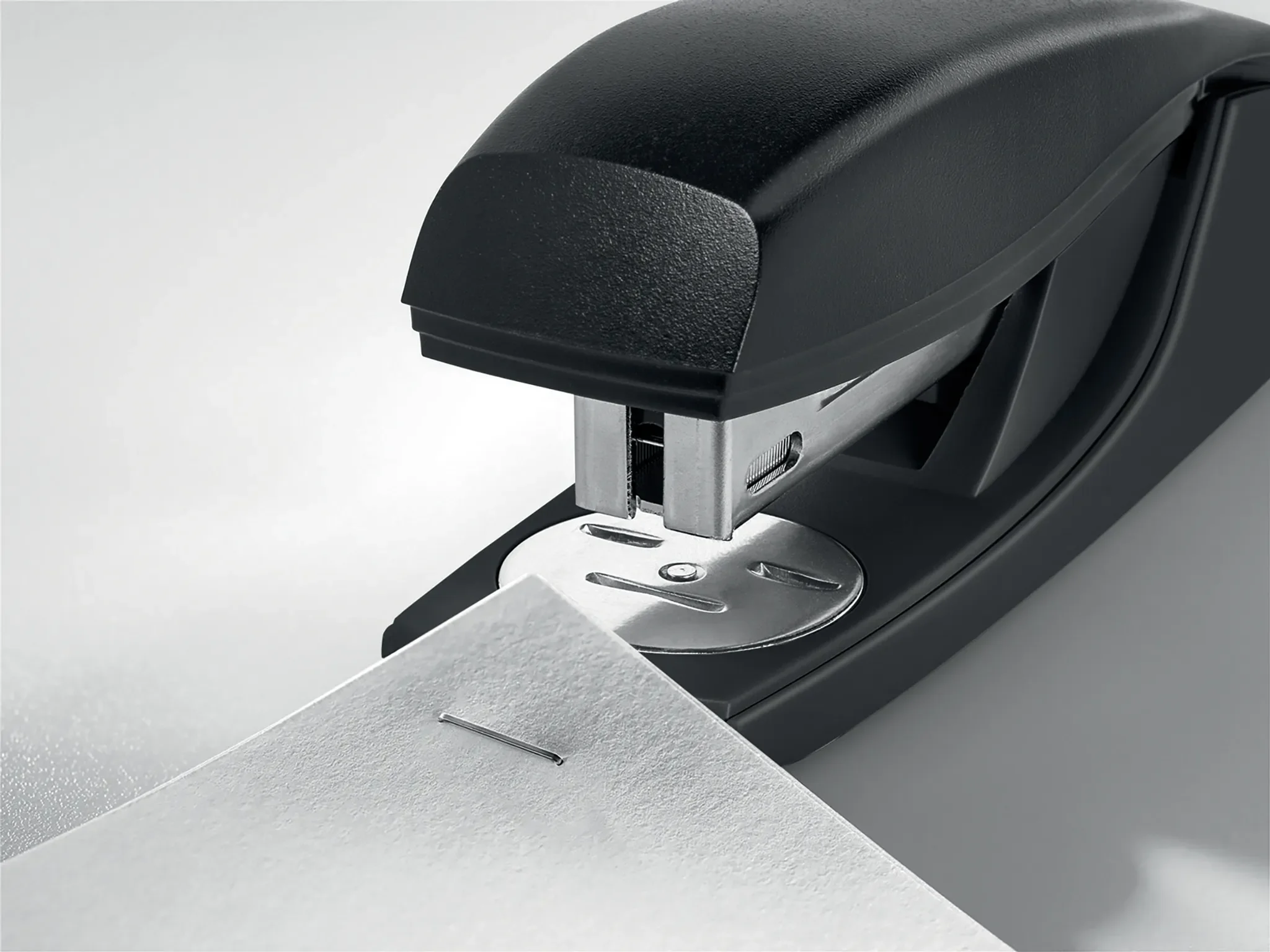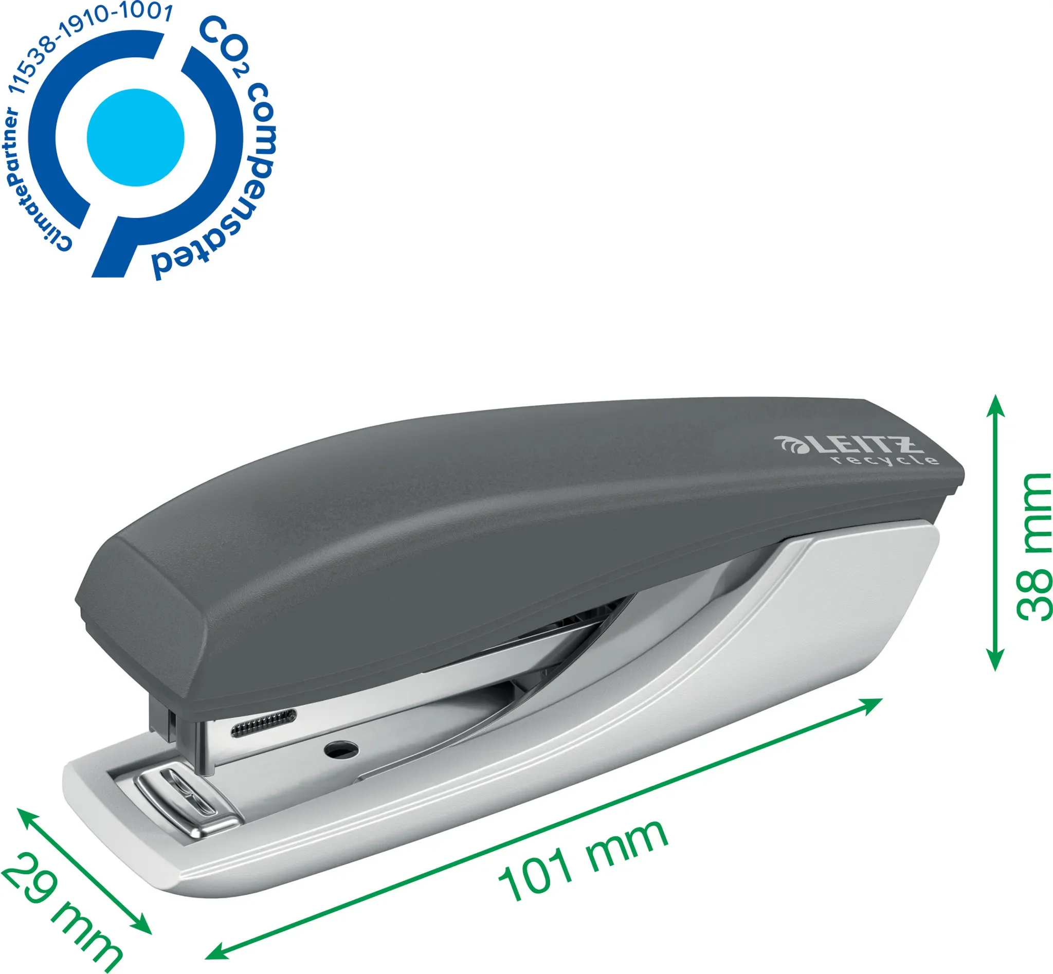 Gefertigt aus recycelten Materialien überzeugt das Heftgerät durch seine langlebige Verarbeitung und eine umweltfreundliche Konstruktion. Die patentierte Direct Impact Technology sorgt für leichtes, präzises Heften bei minimalem Kraftaufwand.
