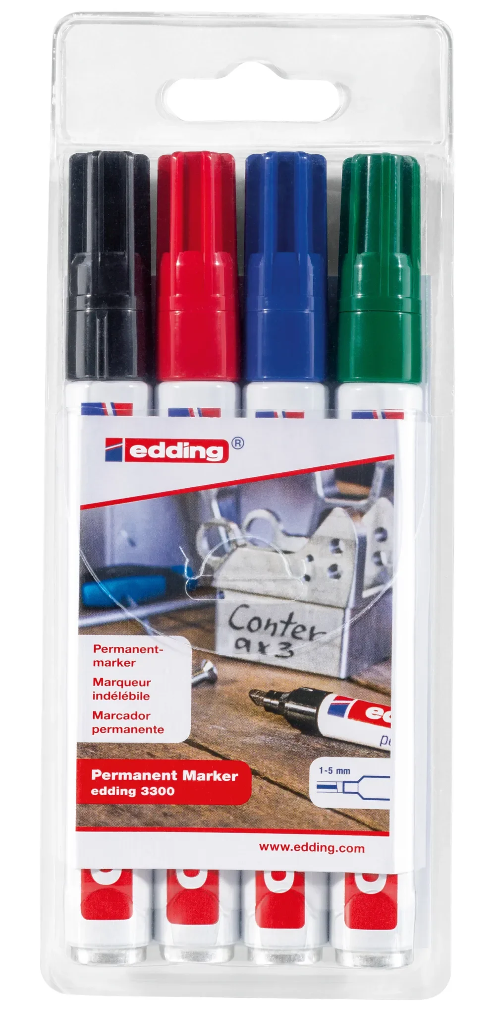 Permanentmarker-Set 3300 – 4 Farben, Keilspitze 1–5 mm